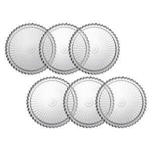 InfoDetailsBarcode 6974094464359 Description Crown Dessert Plate Set, 20 Cm, 18-3, 6 Pieces. Glass material. Extra impact resistant. Mainly used to hold desserts etc. Dishwasher safe. Brand Tong YuanCategory Glass productsMaterial QelqDimensions 20 cm
